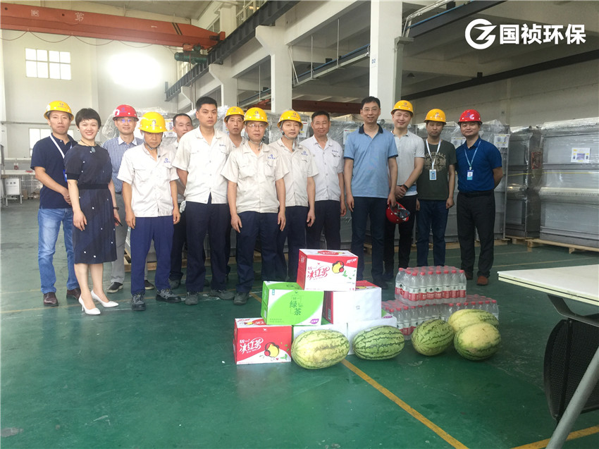 8月7日,國禎環(huán)??偨?jīng)理石小峰、監(jiān)事會主席陳會武、經(jīng)營副總監(jiān)趙玉香等一行來到膜科技、設(shè)備制造事業(yè)部生產(chǎn)車間,將防暑降溫用品一一送到一線員工手中,詳細(xì)詢問車間的防暑降溫措施,囑咐大家要做好安全教育、遵守安全規(guī)章,要將安全工作抓實(shí)抓細(xì),希望大家要齊心協(xié)力做好防暑降溫工作,確保高溫季節(jié)安全生產(chǎn)穩(wěn)定。
